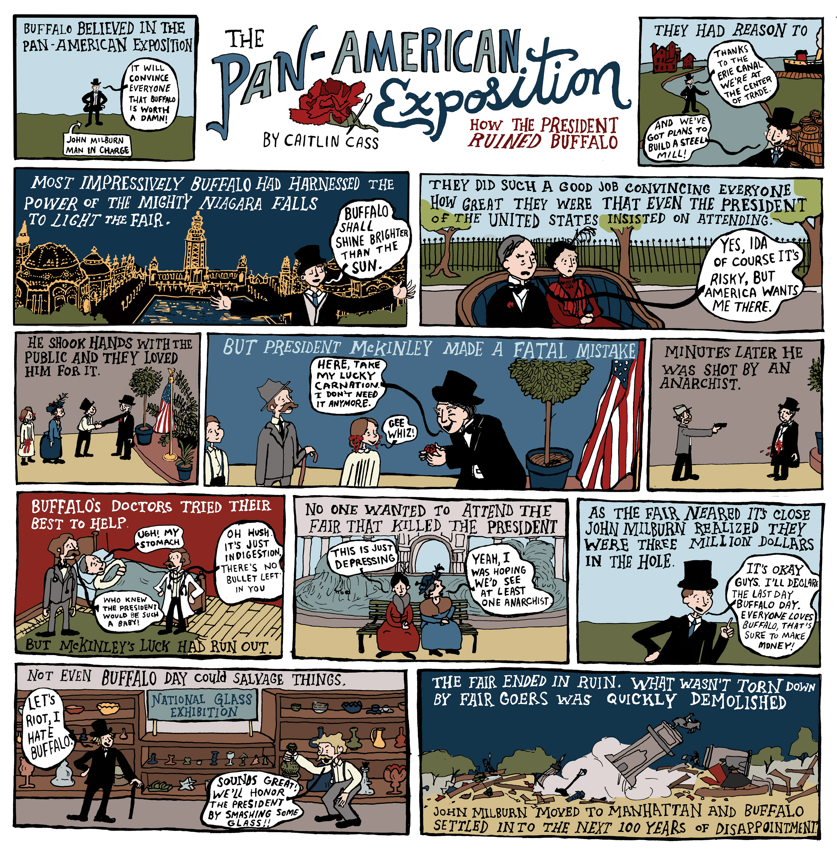 This comic documents Buffalo's darker moments from President McKinley's assassination and the failure of the Pan-American Exposition to the replacement of entire neighborhoods with litter strewn lots.